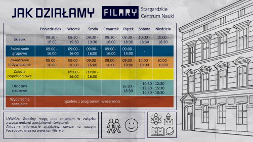 Na czas wakacji i ferii zimowych w zachodniopomorskich szkołach, Stargardzkie Centrum Nauki FILARY wydłuża dostępność ekspozycji dla indywidualnych zwiedzających. W roku szkolnym 2025/26, FILARY będzie można odwiedzić: