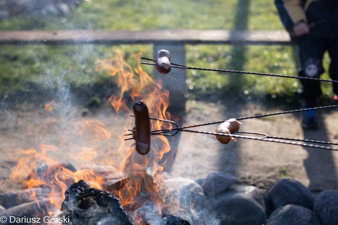 Jesienią chętnie wszyscy lubią posiedzieć przy ognisku. Każdy się trochę pokręci przy zwierzątkach, lekko zmarznie, zgłodnieje, to i nabiera większej ochoty na ognisko. Tak więc w każdy weekend przy tym ognisku parę osób zawsze skorzysta z ognia, czy to żeby się tylko ogrzać, czy żeby także upiec kiełbaskę. Do tego kawka, herbatka. Tak to mniej więcej ostatnio wygląda.