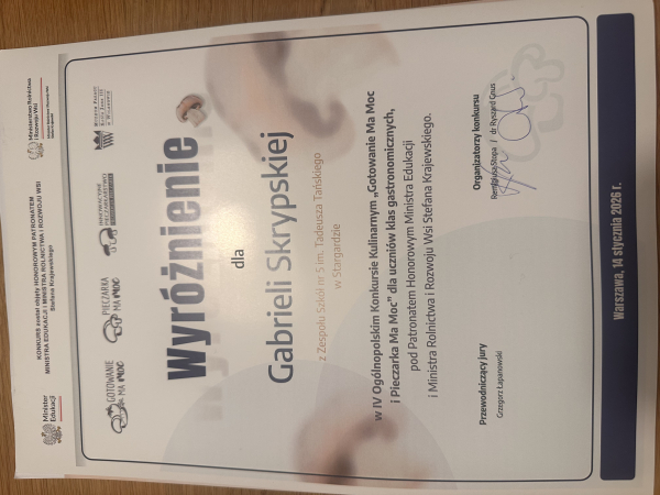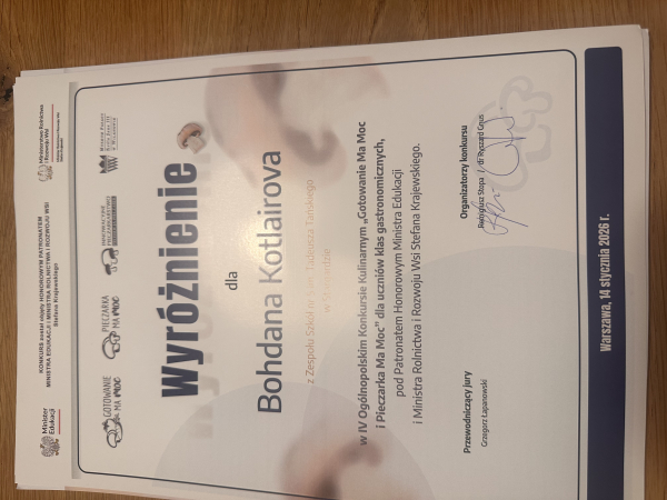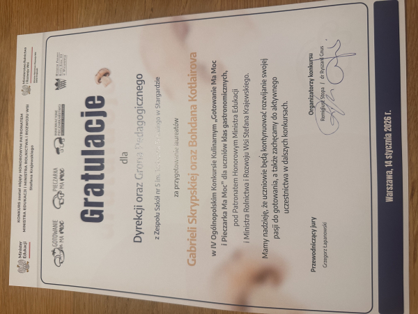 Kucharze ZS 5 Bohdan Kotliarov i Gabrysia Skrypska przygotowali danie, które znalazło uznanie jury topowych polskich kucharzy, pod przewodnictwem pana Grzegorza Łapanowskiego.
