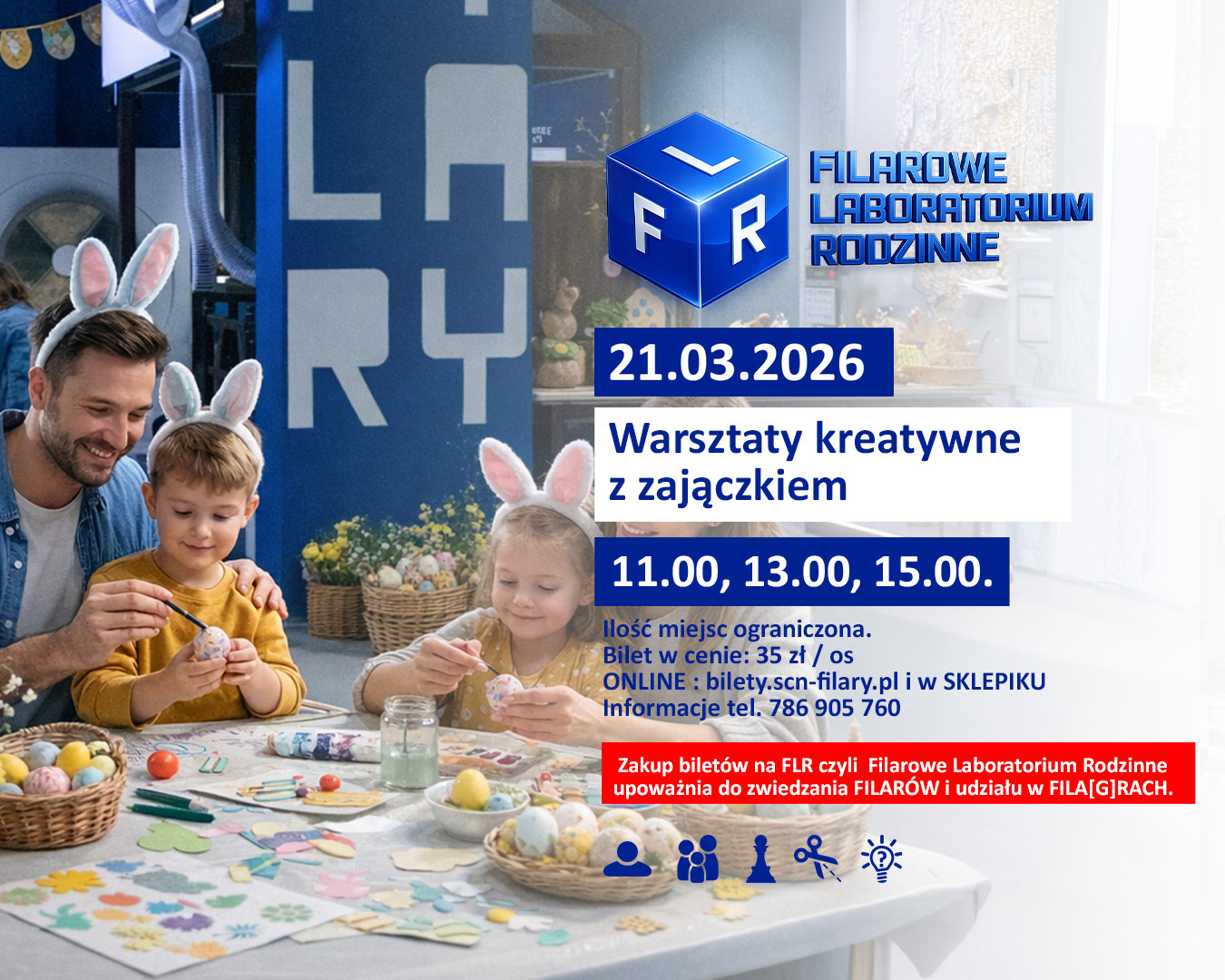 21.03 – Filarowe Laboratorium Rodzinne: Wiosenne warsztaty z Zajączkiem dla dzieci 5+ i ich opiekunów. Jeden bilet = warsztaty wielkanocne + zwiedzanie wystawy + planszówkowe spotkanie FILA[G]RY + warsztaty malowania figurek! Idealny plan na rodzinną sobotę.