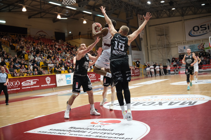 Ilja Gromovs zaczął play-offy od double-double (19 punktów i 12 zbiórek). Środkowy miał kilka pudeł, ale trafił 7/11 prób z gry i wykorzystał 5/5 rzutów wolnych. Jarosław Mokros dołożył 13 punktów (4/6 z gry i 4/4 rzuty wolne), siedem zbiórek i cztery asysty, a Wojciech Czerlonko zdobył 17 punktów. Stargardzianie mocno ograniczyli poczynania MVP rundy zasadniczej. Jayden Coke-Domingue zdobył 14 punktów, trafiając 4/13 prób z gry i 4/7 rzutów wolnych. Miał też po pięć zbiórek, asyst i przewinień definitywnie opuszczając parkiet w połowie czwartej kwarty.