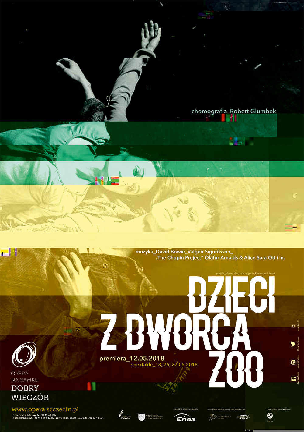 Spektakl Dzieci z dworca ZOO to impresja na temat najważniejszych wątków poruszonych w książce i filmie. Taniec współczesny jako środek wyrazu jest w stanie spojrzeć na tę opowieść z innej strony i pokazać to, co do tej pory być może umknęło uwadze odbiorców. Dramaturgię spektaklu dopełni niezapomniana muzyka Davida Bowiego, a także alternatywne kompozycje islandzkiego twórcy Valgeira Sigurossona i eksperymentalne utwory z The Chopin Project Ólafura Arnaldsa i Alice Sary Ott. Autorem scenariusza, choreografii i inscenizacji jest wybitny choreograf Robert Glumbek, który za swoją realizację otrzymał tytuł Najlepszego Choreografa w Polsce 2018 r. (XIII Teatralna Nagroda Muzyczna im. J. Kiepury). Spektakl zdobył Bursztynowego Pierścienia 2018 dla najlepszego spektaklu sezonu.
