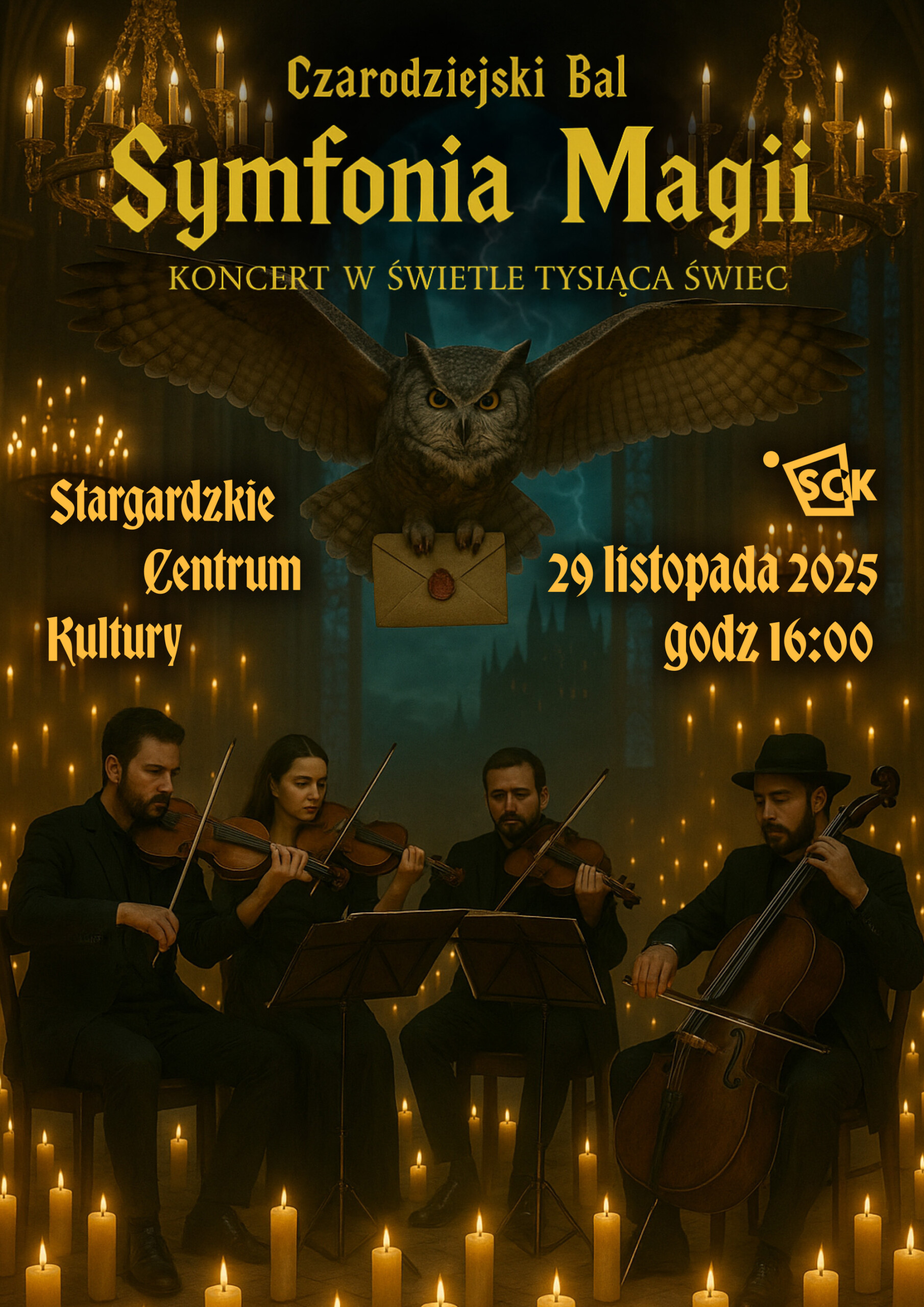 „Symfonia Magii” to niezwykłe wydarzenie muzyczne, inspirowane legendarną ścieżką dźwiękową znaną z filmowej sagi o młodych czarodziejach. Na scenie wystąpi kwartet smyczkowy, który wykona na żywo najpiękniejsze, najbardziej rozpoznawalne tematy – od subtelnych melodii towarzyszących sowom, listom i początkowi roku szkolnego, po monumentalne utwory z wielkich finałów. Każda nuta będzie jak powrót do Wielkiej Sali, do skrzypiących schodów, do poranków przy eliksirach i zaklęciach wypowiadanych szeptem.